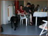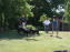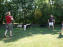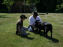 Wir hatten zu um 14:00 Uhr eingeladen und so nach und nach trudelten alle Frauchen, Herrchen, Kinder und Welpen bei uns ein. Eigentlich wollten wir unser erstes Wiedersehen mit einem gemeinsamen Spaziergang beginnen, aber bei Temperaturen um die 30° C und keinem Windzug hatten wir uns schnell dazu entschlossen, lieber ein schattiges Plätzchen zu suchen und der Meute beim herumtollen zuzusehen, dabei wurde natürlich auch eine ganze Menge gefachsimpelt.
