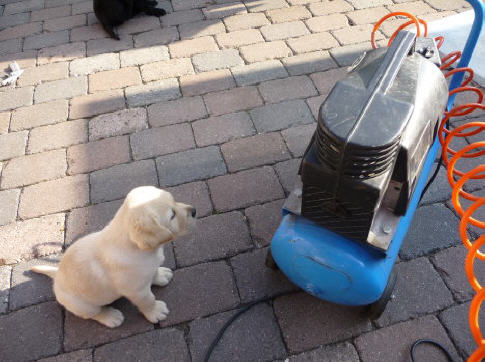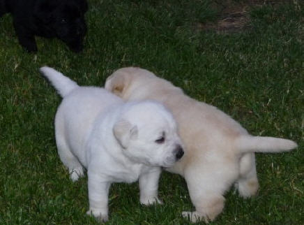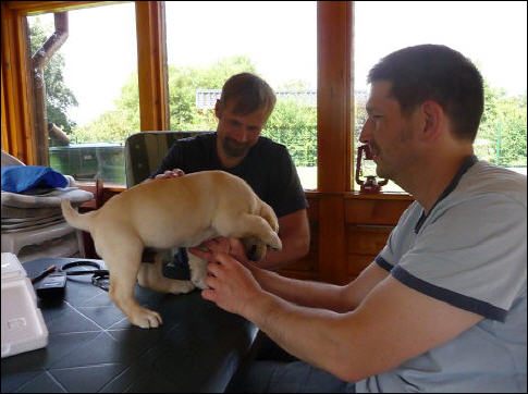 Am Sonntag den 14.06.2009 haben wir unsere Namen bekommen, denn binnen einer Woche -nach unserer Geburt- müssen wir mit unseren Namen an die Zuchtbuchstelle des Labrador Club Deutschland e.V. (LCD) gemeldet werden. |
