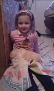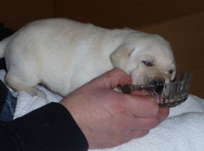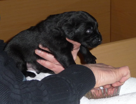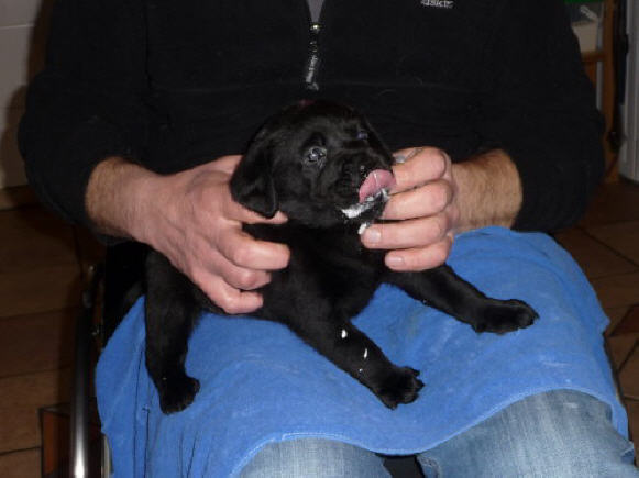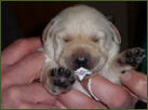 Eine kleine gelbe Hündin kam um 22:55 Uhr mit einem Geburtsgewicht