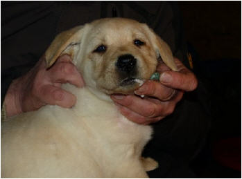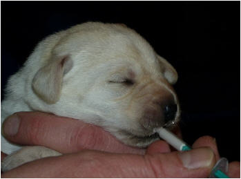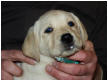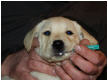 Der erste Welpe - eine kleine gelbe Hündin - kam um 14:45 Uhr auf die Welt.
