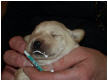 1. Hündin, gelb, 14:45 Uhr, 322 g (am 05.02. gestorben)