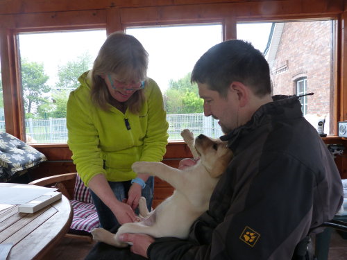 Erfahrungsgemäß haben wir dann noch ca. 24 - 32 Stunden Zeit, bevor die Welpen geboren werden. Da wir "zwischen den Meeren" wohnen, orientieren wir uns bei den Geburten auch immer an den Gezeiten. Unsere Welpen werden ausschließlich bei auflaufendem Wasser geboren und somit sind wir davon ausgegangen, dass wir noch bis zum Dienstag Zeit haben. Die Nacht verlief dann auch wie vermutet -mit intensivem Hecheln- ganz normal, und auch für den Dienstagvormittag brauchten wir uns -weil Ebbe war- noch keine Gedanken machen.