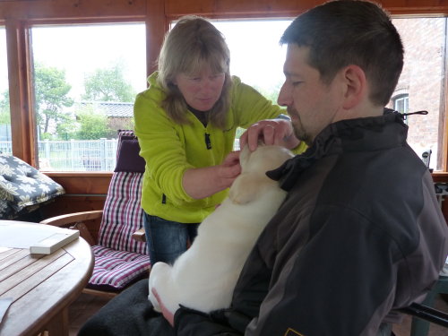 Ally´s Welpen hatten sich aber entschieden, auch die Nachmittagsflut wieder ablaufen zu lassen und ließen uns bis zum späten Abend warten. Gegen 21:00 Uhr setzten dann - nach langen 26 Stunden warten - endlich die ersten Wehen ein und Welpe Nr. 1 wurde um 22:20 Uhr geboren.