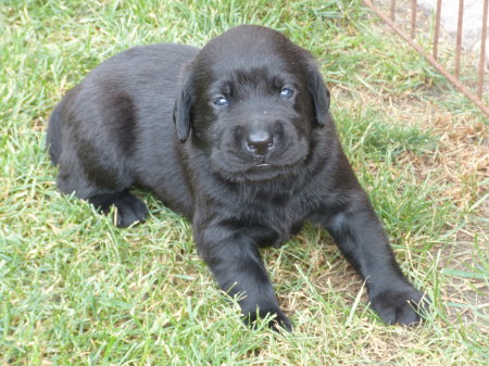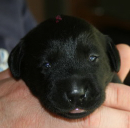 Am Dienstagmorgen, 15.07.2014, um 5:50 Uhr war es soweit und die erste kleine schwarze Hündin wurde geboren.