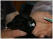 Als der erste Welpe - nach den ersten Presswehen - sehr schnell das Licht der Welt erblickt hatte, ließ der zweite Welpe lange auf sich warten. Erst zwei Stunden später durften wir einen kleinen schwarzen Rüden begrüßen.