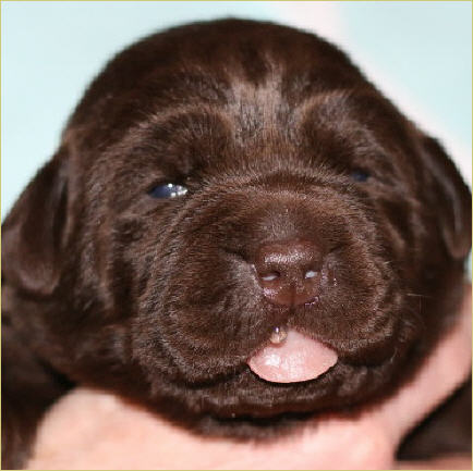 Es ist immer wieder ein faszinierender "Augenblick", wenn die kleinen Welpen uns zum ersten Mal anblinzeln. Jeder Welpe bekommt damit einen einmaligen Gesichtsausdruck.