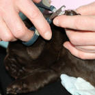Bei unserem V-Wurf war die braune Hündin beim morgendlichen Wiegen (Welpe 1) die "Erste" die uns anschaute und Welpe Nr. 3 (Rüde Po blau) folgte ihr dann am Abend. Welpe Nr. 2 (Rüde Rücken blau) hat sich etwas mehr Zeit gelassen und öffnete seine Augen erst am übernächsten Tag. Nun freuen wir uns auf die kommenden Wochen, in denen unsere V-Lovely´s die große weite Welt entdecken...