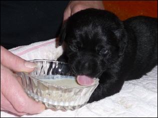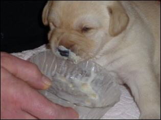 In den nächsten Tagen sollen wir dann auch schon einmal richtiges „Welpenfutter“ probieren. Mal sehen, ob wir das auch mögen. |
