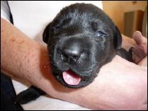 Am 22.06.2009 hat -Rüde „Kopf“- als erster seine Augen geöffnet. Es ist immer wieder ein toller Moment den Babys das erste mal in die Augen zu schauen. |