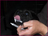 Das Mittel wird vom 10ten Lebenstag an -über drei Tage verteilt- über eine Spritze ins Mäulchen gegeben. |