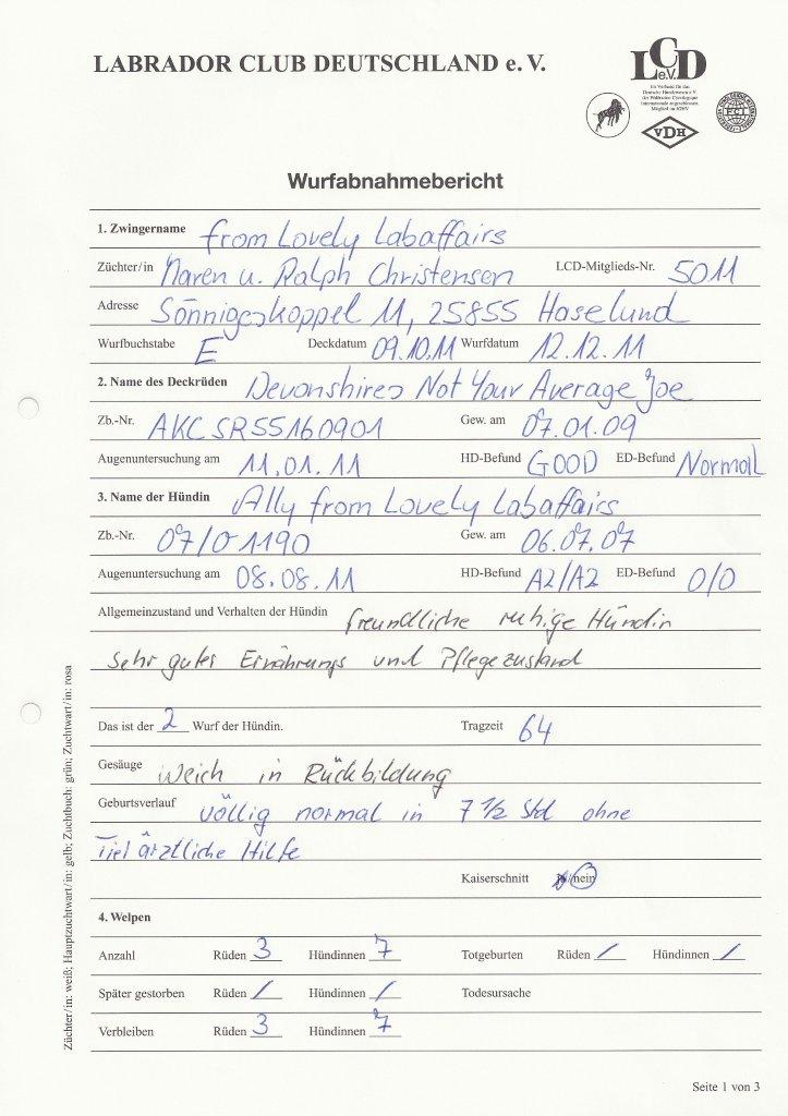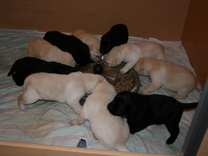 Mit der Bekanntgabe haben wir diesmal etwas länger gebraucht, aber dafür freuen wir uns jetzt riesig Euch mitzuteilen, dass Ally am 12.12.2011, nach genau 63 Tagen, 10 gesunde Welpen zur Welt gebracht hat.