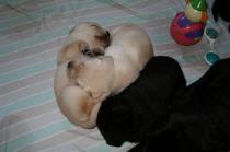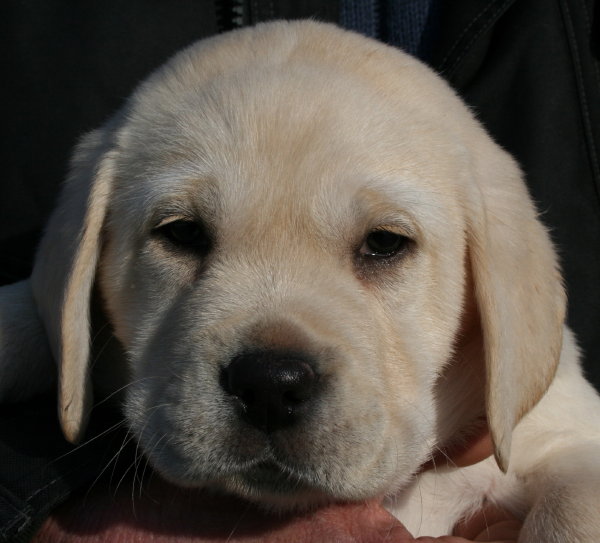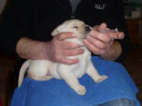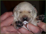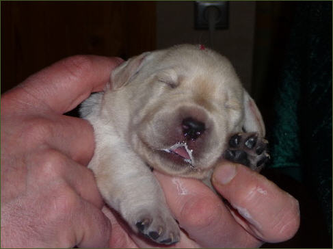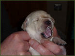 Eine kleine gelbe Hündin kam um 22:55 Uhr mit einem Geburtsgewicht