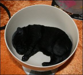 Gewichtskontrolle Um sicher zu stellen, dass alle Welpen zunehmen, werden sie von uns in den ersten 14 Tagen 2 x täglich gewogen. Danach bis zur vierten Woche 1 x täglich und später nur noch alle 2 Tage.