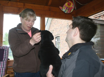Nachdem Dr. Alpermann die Welpen am Vortag schon einmal gründlich untersucht hatte, wurden Bluna und ihre "Kleinen" heute noch einmal genau von Tina in Augenschein genommen. Erst wenn unsere Zuchtwartin Ihr "Okay" gibt, dürfen wir die Welpen - im Alter von acht Wochen - zu ihren neuen Familien geben.