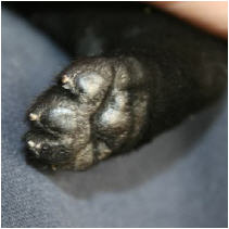 Am 13.04. haben uns die Rüden "ohne" (W1), "Kopf" (W3), und "Schinken" (W6), sowie die kleine Hündin "ohne" (W2) beim morgendlichen Wiegen mit einem ersten "Blickkontakt" begrüßt. Auf Rüde "Rücken" (W4) mußten wir einen Tag länger warten und Rüde "Po" (W5)" hat uns dann am 15.04. auch zum ersten Mal angeschaut. Das öffnen der Augen ist für uns immer wieder ein ganz besonderer Moment, denn jetzt bekommt jeder Welpe seinen ganz persönlichen Ausdruck...