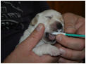 So zog sich die Geburt über12 Stunden hin, bis wir um 18:00 Uhr den letzten Welpen - einen kleinen gelben Rüden - in Empfang nehmen durften.