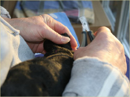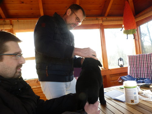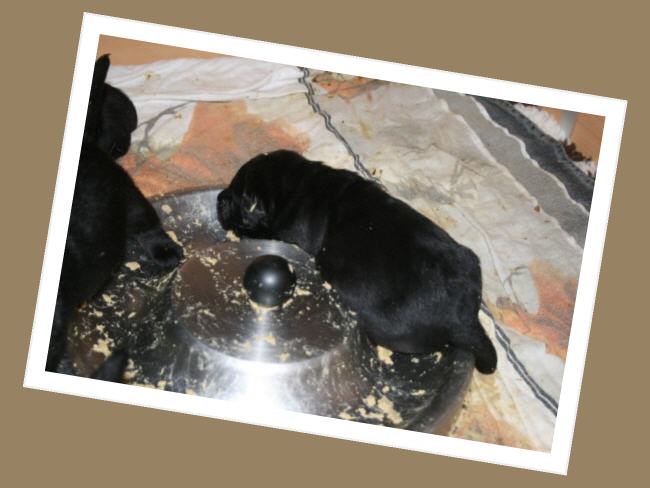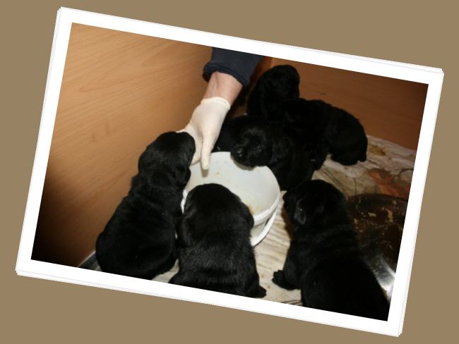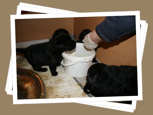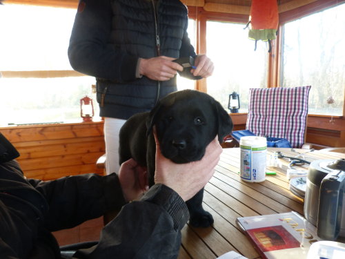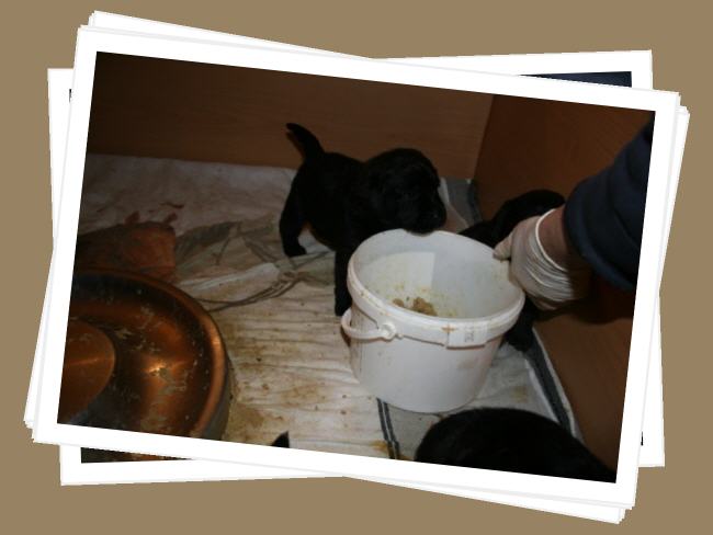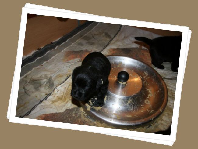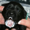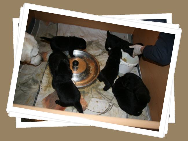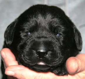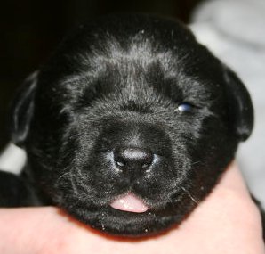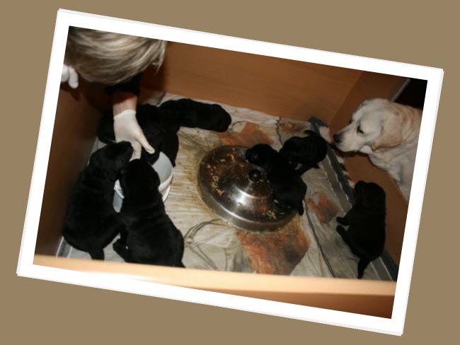 ...und am Montagabend um 21:45 Uhr war es dann soweit, die erste kleine schwarze Hündin wurde geboren.