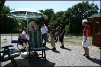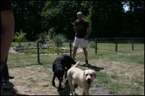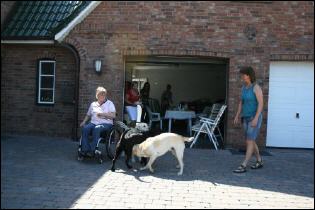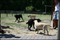 Wir hatten zu um 14:00 Uhr eingeladen und so nach und nach trudelten alle Frauchen, Herrchen, Kinder und Welpen bei uns ein. Eigentlich wollten wir unser erstes Wiedersehen mit einem gemeinsamen Spaziergang beginnen, aber bei Temperaturen um die 30° C und keinem Windzug hatten wir uns schnell dazu entschlossen, lieber ein schattiges Plätzchen zu suchen und der Meute beim herumtollen zuzusehen, dabei wurde natürlich auch eine ganze Menge gefachsimpelt.