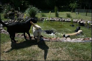 nimmt ein echter Labbi halt ein Bad im Gartenteich!