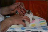 Das Mittel wird vom 10ten Lebenstag an -über drei Tage verteilt- über eine Spritze ins Mäulchen gegeben. |