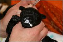 Am 22.06.2009 hat -Rüde „Kopf“- als erster seine Augen geöffnet. Es ist immer wieder ein toller Moment den Babys das erste mal in die Augen zu schauen. |