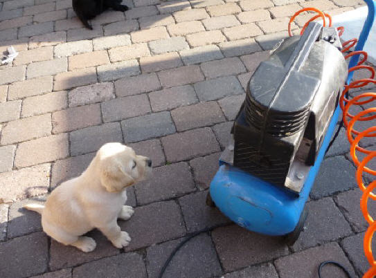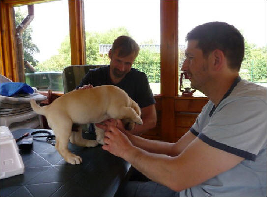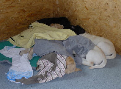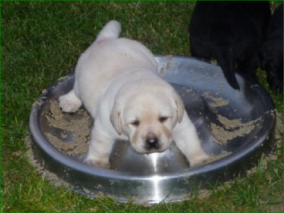 Am Sonntag den 14.06.2009 haben wir unsere Namen bekommen, denn binnen einer Woche -nach unserer Geburt- müssen wir mit unseren Namen an die Zuchtbuchstelle des Labrador Club Deutschland e.V. (LCD) gemeldet werden. |