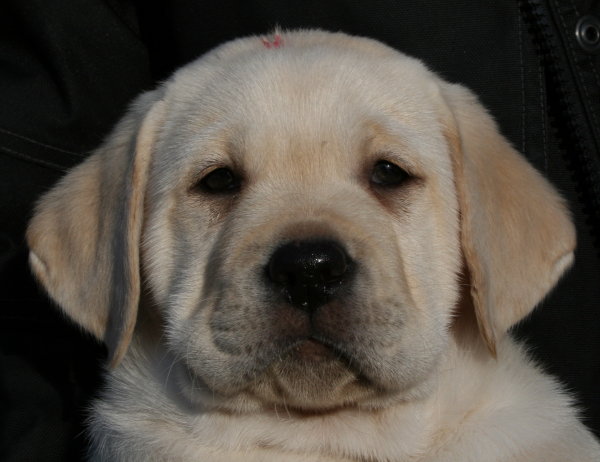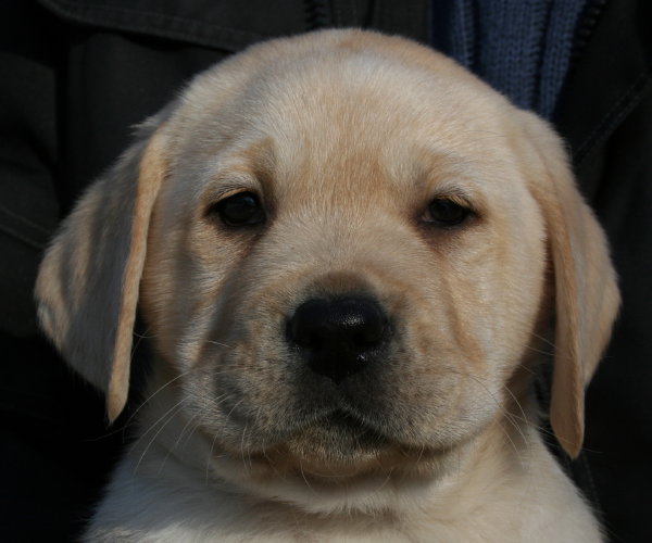 Eine kleine gelbe Hündin kam um 22:55 Uhr mit einem Geburtsgewicht