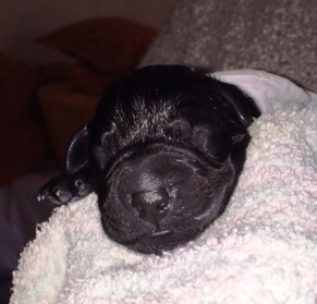 ...und am Dienstagmittag um 12:45 Uhr war es dann soweit, der erste kleine schwarze Rüde wurde geboren.