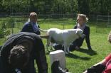 Nachdem Dr. Alpermann die Welpen am Vortag schon einmal gründlich untersucht hatte, wurden Bluna und ihre "Kleinen" heute noch einmal genau von Tina in Augenschein genommen. Erst wenn unsere Zuchtwartin Ihr "Okay" gibt, dürfen wir die Welpen - im Alter von acht Wochen - zu ihren neuen Familien geben.