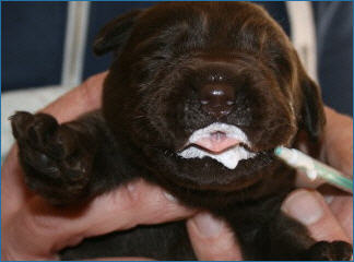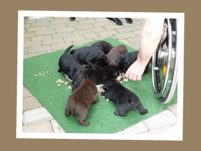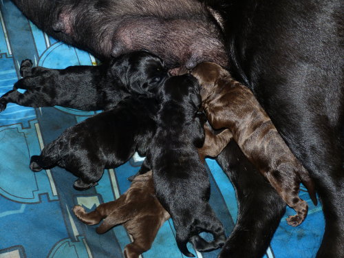 Nun war Eile geboten und so machte ich mich wieder auf den Heimweg.Zuhause angekommen, wurde schnell der Welpe versorgt, bevor er zu seiner Mutter und seinen Geschwistern in die Wurfkiste durfte.