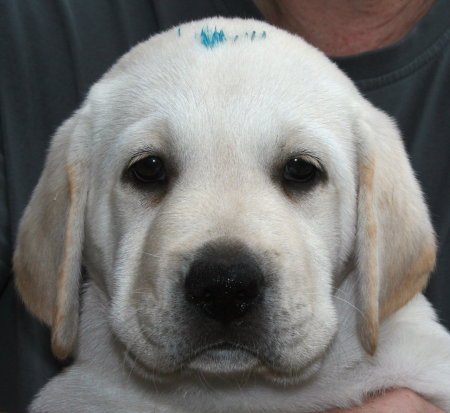 So zog sich die Geburt über12 Stunden hin, bis wir um 18:00 Uhr den letzten Welpen - einen kleinen gelben Rüden - in Empfang nehmen durften.