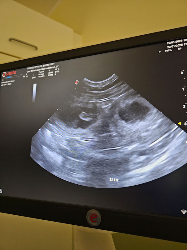 Wir waren am 22.01.2025 mit Osa zum Ultraschall und freuen uns auf Welpen von Osa und Cooper um den 27.02.2025